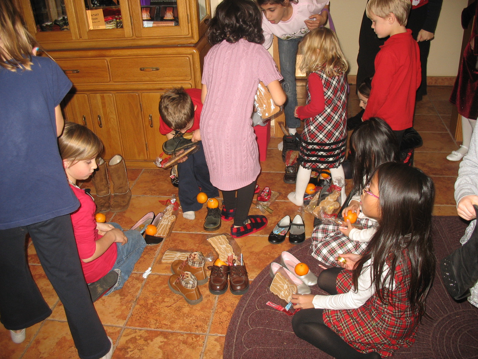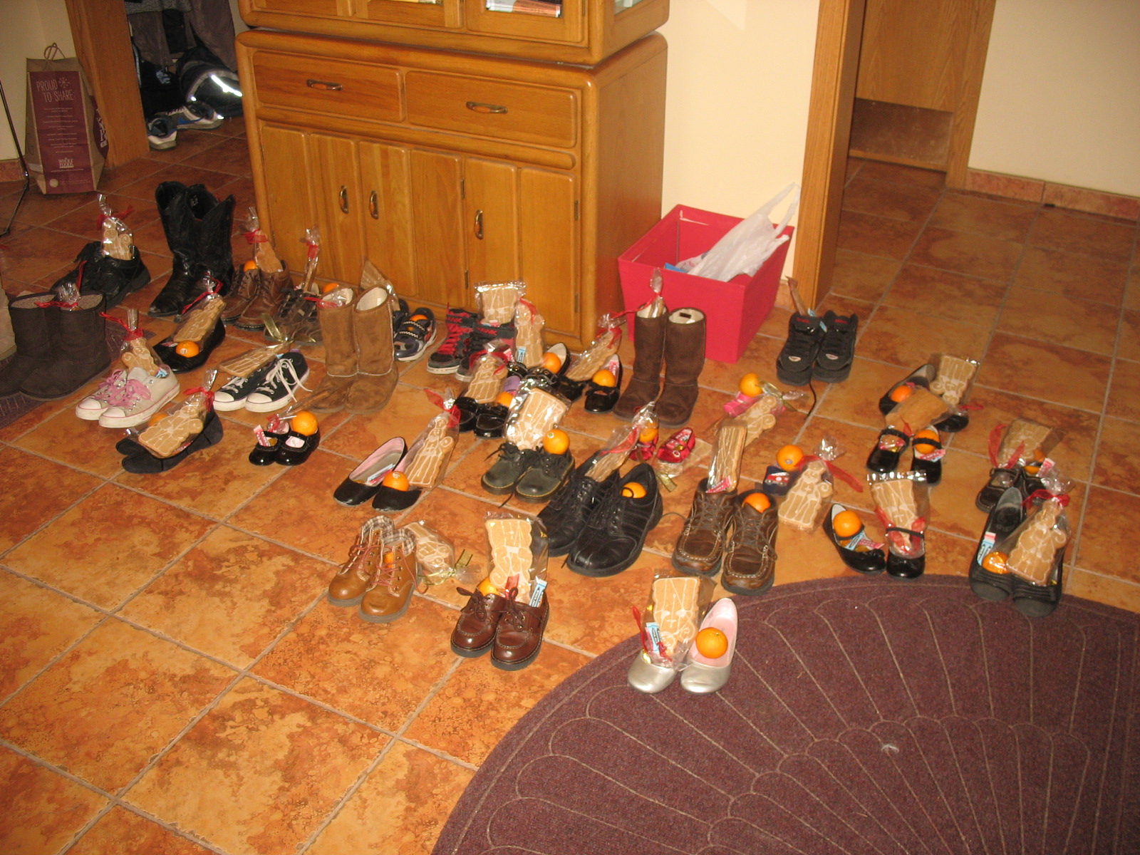Prior to the start of the program the children of the parish are instructed to put their shoes in the foyer of the church where specially prepared St. Nicholas treats are placed in their shoes during the program.